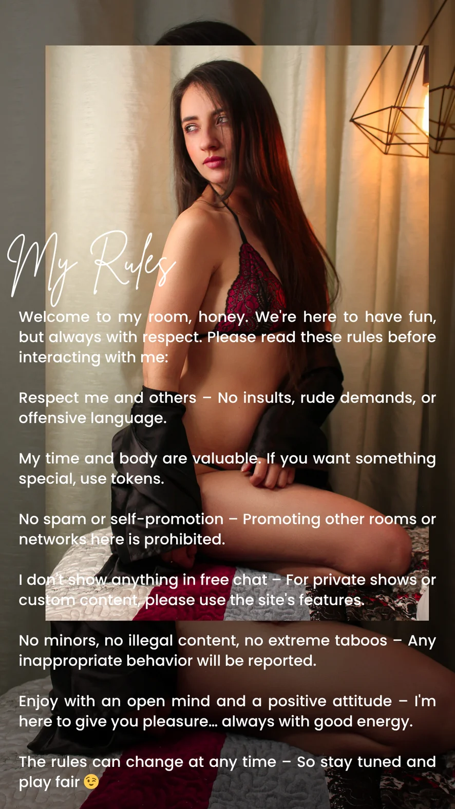 Doggy style, Ahegao, Smiskning, Erotisk dans, Kameltå, Snuskprat, Striptease, Blottning, Topless, Twerk, Cowgirl, Fingrar, Avsugning, Dildo eller Vibrator, Sexleksaker, Onani, Bröstknull, Avrunkning, Hårdporr, Deepthroat, Oljeshow, Spruta, Orgasm
